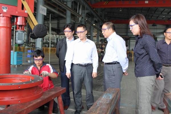 2010年9月10日下午,荊門市市長萬勇一行領(lǐng)導(dǎo)來我公司進行調(diào)研指導(dǎo)。萬市長在公司總經(jīng)理濮群堂的陪同講解下,依次參觀了蝶閥和球閥的裝配及加工車間。其間,萬市長對我公司的成立、發(fā)展和壯大進行了簡要的了解,并對公司長期以來良好的社會效應(yīng)給予了肯定。下午4時,萬市長一行人順利結(jié)束了參觀和指導(dǎo)工作。