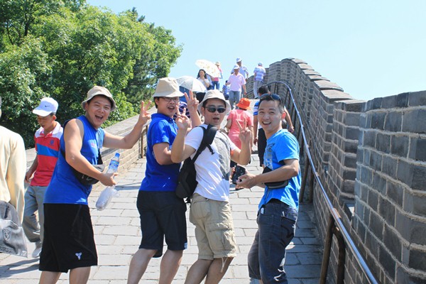 “不到長城非好漢”。13日,我們便開赴八達(dá)嶺長城,開始了好漢征程。想起一些古老的故事,烽火戲諸侯、孟姜女哭長城,可惜,背景不是我們現(xiàn)在將要登上的八達(dá)嶺長城。站在烽火臺上,看著延綿不斷的長城像條長龍盤踞在群山之間,你會相信,真的,這是可以在太空中用肉眼看見的人工建筑,當(dāng)之無愧的世界七大奇跡之一。