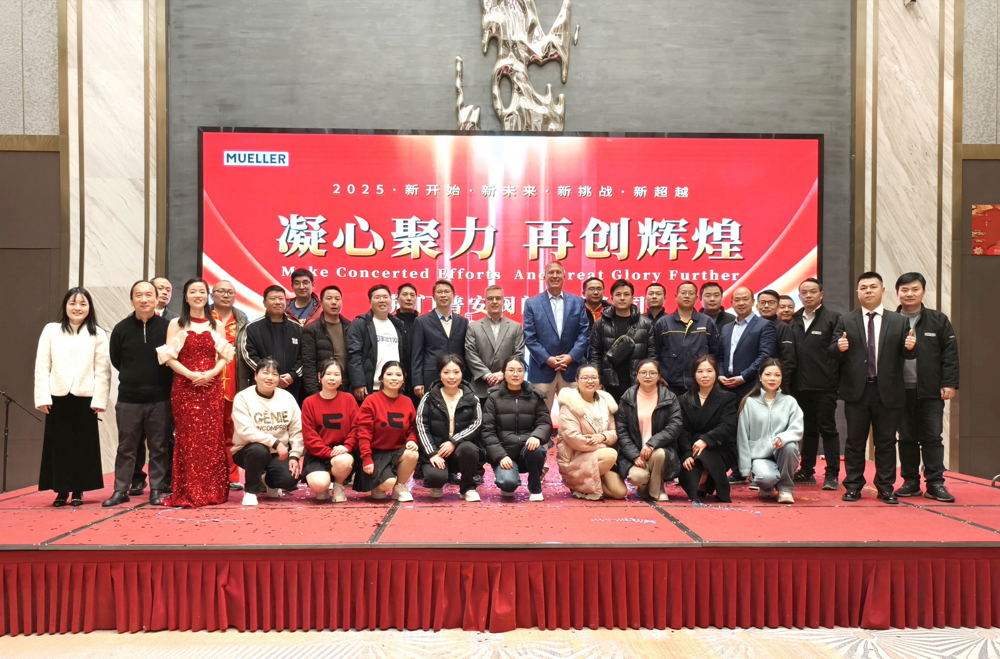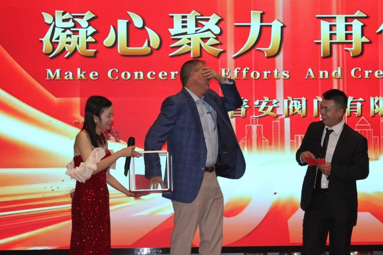 年會活動18:00準(zhǔn)時開始,Mueller高級副總裁兼首席人力資源官Todd、運營副總裁Tom及廠長Robin先后做了精彩紛呈的致辭,并對公司一年來所取得的成績給予了肯定,對公司新一年的運營提成了新要求,新期待,并為全體員工送上了溫馨的新年祝福。